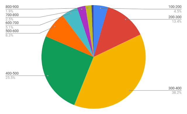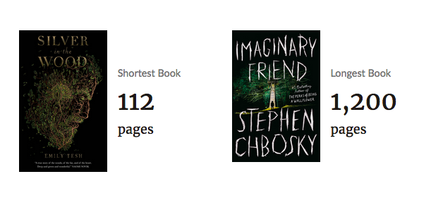Most of my page counts are similar to last year, with the only noticeable increases being in the 1-200 page range, which tracks with what I mentioned earlier about somehow ending up reading a lot of shorter books that were published this year. I have a feeling this year might get me back into higher amounts of chunkier books due to some fantasy reading plans, among other, but time will tell!