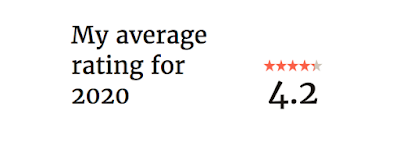 This almost always ends up being my average rating because it's usually a little inflated since I typically round up my ratings on Goodreads (for instance, I do a lot of .25, .5, and .75 star ratings).